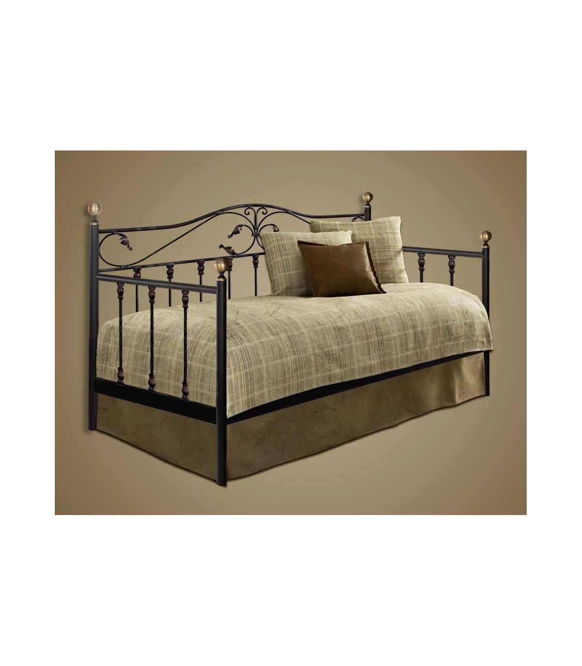 Canapé-lit en tube et tige de fer massif, finition en laiton antique. Un lit de jour élégant et traditionnel avec des matériaux et un savoir-faire de la meilleure qualité. Laqué en noir de forge. Dimensions du lit...