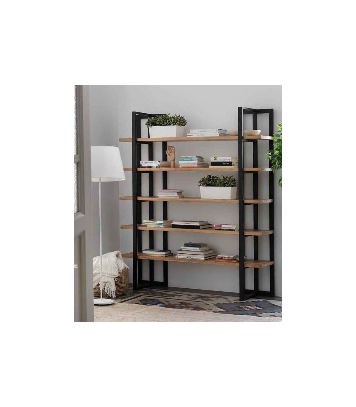 Etagère de style industriel en fer laqué avec des étagères individuelles en pin naturel de 2,5 cm d'épaisseur. Pour offrir de la variété et des options, nous pouvons choisir aussi bien la couleur de la structure en fer que les tons du bois.